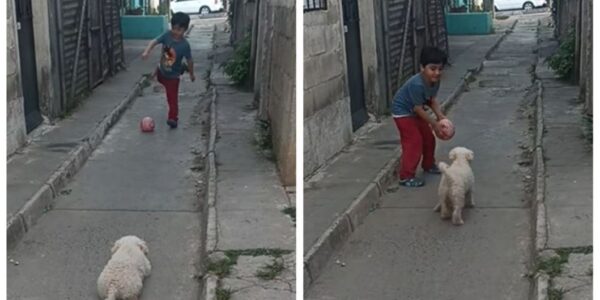 🔸 La escena, aunque sencilla, refleja una interacción espontánea entre un niño y su mascota, en un entorno cotidiano que se transforma en un espacio de juego. #VIRAL | Un video viral que circula en redes sociales ha captado la…