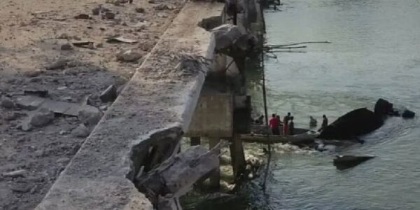 Pobladores saquean tráiler que cayó al río en Tabasco