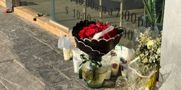Dejan flores con el mensaje “Perdón” en el salón donde fue asesinada Valeria Márquez