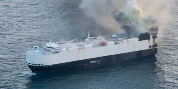 Buque que viajaba de China a Michoacán se hunde con miles de vehículos eléctricos a bordo