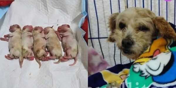 Perrita embarazada sobrevive a explosión de pipa y da a luz a cinco cachorros