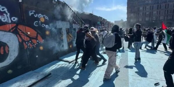 Marcha Generación Z: encapuchados derriban vallas de Palacio Nacional y policía los contiene con extintores