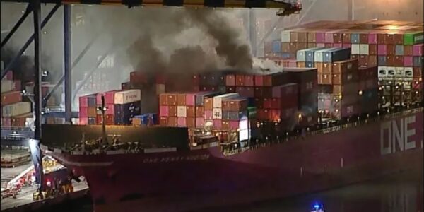 🔸 Un incendio a bordo del buque portacontenedores One Henry Hudson provocó una orden de refugio en comunidades cercanas por la presencia de materiales peligrosos. #ESTADOSUNIDOS | Un incendio que se desató a bordo de un buque portacontenedores en Los…
