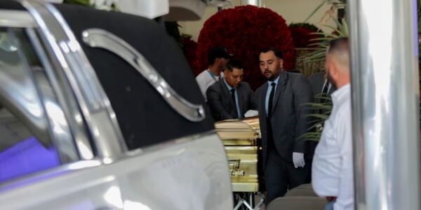 Sepelio de “El Mencho”: En un ataúd dorado, con música de banda y grúas con coronas de flores
