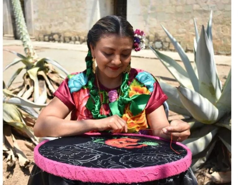 La pieza fue elaborada por Claudia Vásquez Aquino, artesana de Santa María Xadani, Oaxaca.