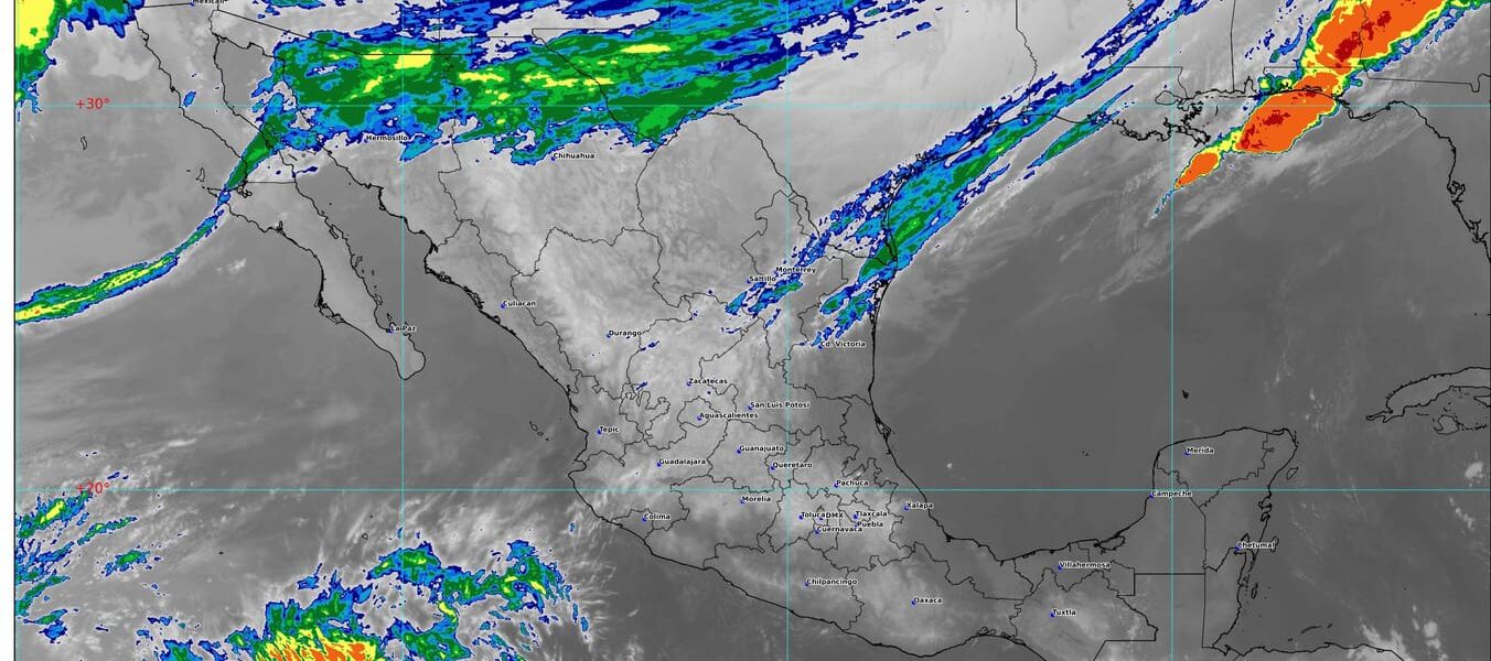 Por otra parte, una vaguada en niveles altos de la atmósfera y la corriente en chorro polar, ocasionarán lluvias puntuales fuertes y rachas de viento de 50 a 70 km/h en Baja California, así como posible caída de nieve o aguanieve en sierras de Baja California, Sonora y Chihuahua.