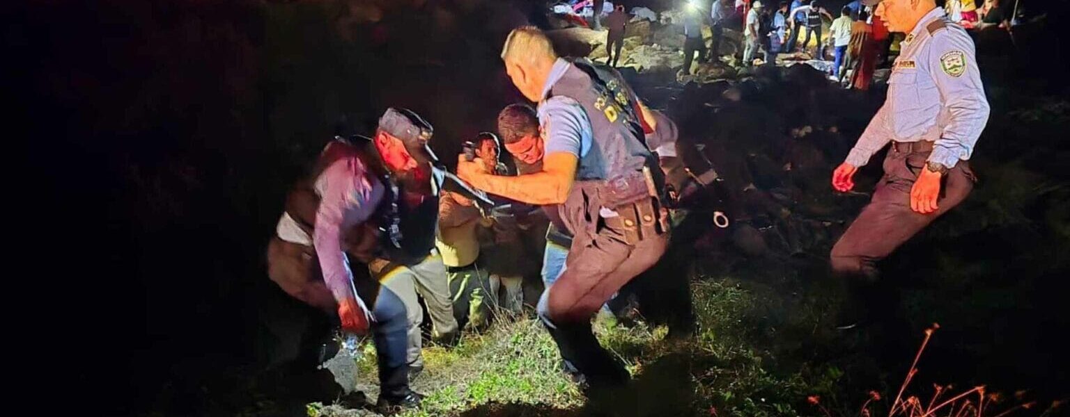 Socorristas de varias instituciones y voluntarios participan en las labores de rescate, que se han visto obstaculizadas por la falta de visibilidad.