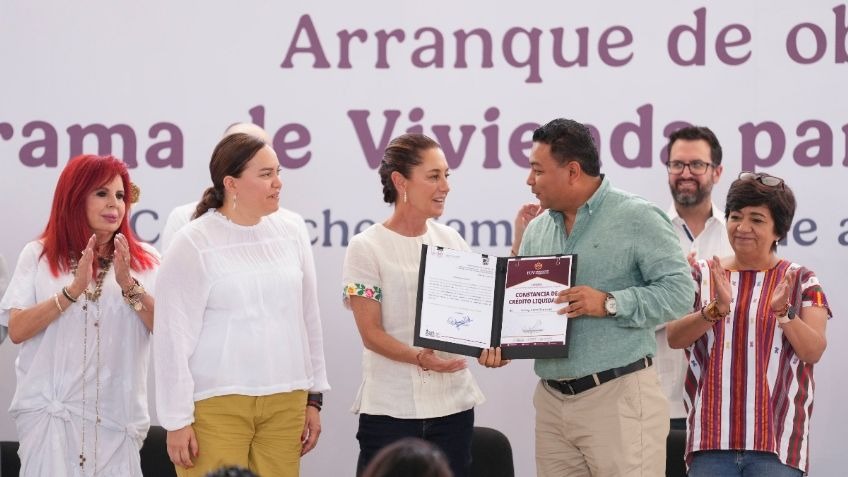 🔸En el arranque del programa Vivienda para el Bienestar en Campeche, la presidenta destacó que México le «da clases» a Estados Unidos en temas como los valores