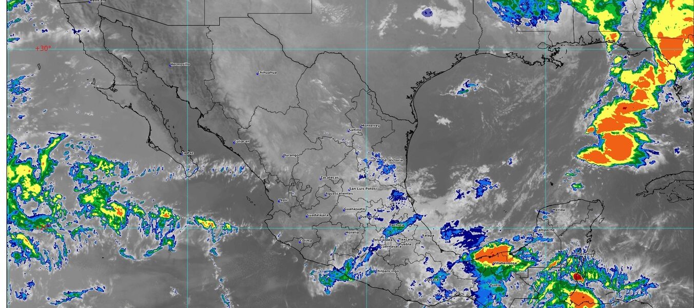 Península de Yucatán: Durante el día, se pronostica cielo nublado con lluvias puntuales intensas en Campeche, Yucatán y Quintana Roo, acompañadas con descargas eléctricas, las cuales podrían ocasionar encharcamientos e inundaciones. Por la mañana, ambiente cálido y muy caluroso por la tarde. Evento de “Norte” de 20 a 30 km/h con rachas de 40 a 60 km/h en Campeche y Yucatán, y viento del este y sureste de 10 a 20 km/h con rachas de 30 a 50 km/h en Quintana Roo.