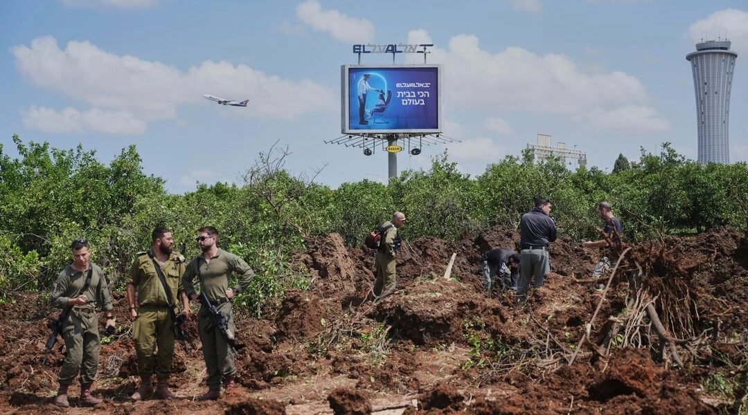 El jefe de la policía de la región central de Israel, Yair Hezroni, en un video donde aparece la torre de control del aeropuerto al fondo, explicó que hay «un cráter de varias decenas de metros de ancho y también de varias decenas de metros de profundidad».