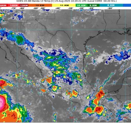Por otra parte, canales de baja presión, en interacción con el ingreso de humedad del océano Pacífico, golfo de México y mar Caribe, así como con inestabilidad atmosférica, originarán lluvias y chubascos vespertinos con descargas eléctricas y posible caída de granizo sobre el occidente, centro, sur y sureste mexicano, incluida la península de Yucatán, así como lluvias puntuales fuertes en Chiapas.