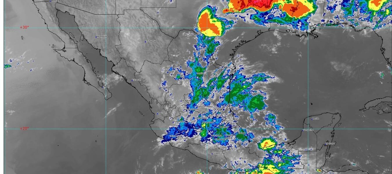 A su vez, canales de baja presión sobre la Mesa del Norte, la Mesa Central y el sureste de la República Mexicana, en interacción con inestabilidad atmosférica y el ingreso de humedad del océano Pacífico, golfo de México y mar Caribe, ocasionarán chubascos y lluvias fuertes a muy fuertes acompañadas con descargas eléctricas y posible caída de granizo en las regiones mencionadas, además del occidente, sur y oriente del país.