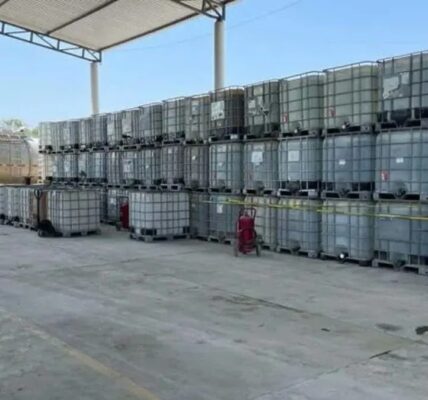 Fue así que de manera coordinada se realizó un dispositivo para ejecutar la orden de cateo donde se aseguraron 18 vehículos, tres equipos de maquinaria, 3 mil 904 contenedores con estructura metálica que contenían 3 millones 123 mil 200 litros de un líquido derivado del petróleo.