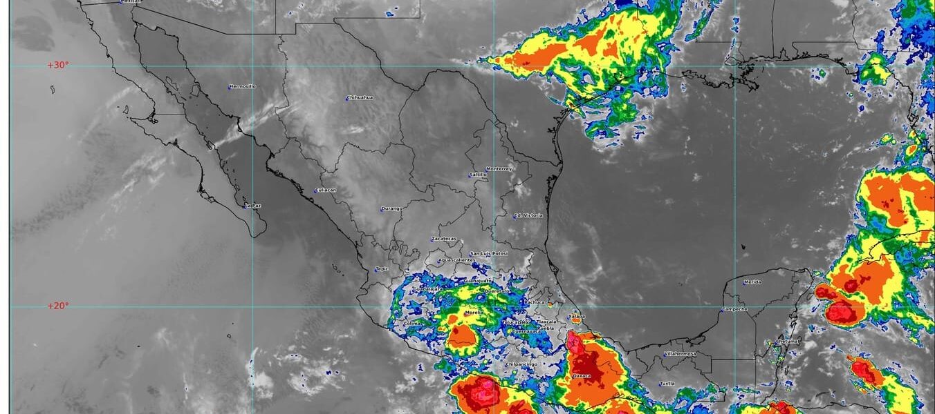 La onda tropical número 2 que se desplazará sobre el sur del territorio nacional y un canal de baja presión sobre la Mesa Central, ocasionarán lluvias puntuales intensas en Veracruz, Oaxaca y Puebla; puntuales muy fuertes en Guerrero; puntuales fuertes en Morelos y Estado de México; y chubascos en Tlaxcala, Ciudad de México, Hidalgo, Querétaro y Guanajuato. El ingreso de aire húmedo del océano Pacífico originará lluvias puntuales fuertes en Michoacán, Colima y Jalisco.