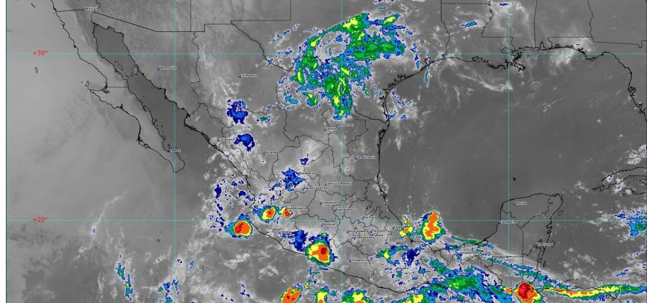 🔸Se prevén lluvias fuertes en varias entidades y prevalece la onda de calor en Chihuahua, Coahuila, Nuevo León, Tamaulipas, San Luis Potosí, Zacatecas, Durango, Aguascalientes, Sinaloa, Nayarit, Jalisco, Colima y Michoacán, entre otros estados.