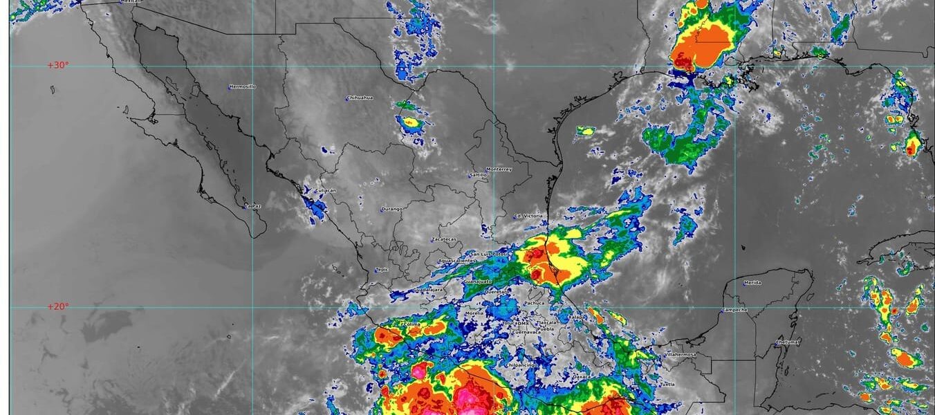 Además, las lluvias estarán generadas por la interacción de estos sistemas con el potencial ciclón tropical CUATRO-E, que se localiza al sur de las costas de Guerrero y que continúa intensificándose, lo que incrementará la entrada de humedad hacia la Península.
