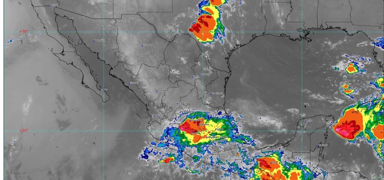 Por otra parte, se mantendrá el ambiente caluroso a muy caluroso sobre gran parte del territorio nacional, prevaleciendo la onda de calor en los estados de Chihuahua (sur y sureste), Coahuila (oeste y suroeste), Nuevo León (sur), Tamaulipas (sur y suroeste), Durango, Zacatecas, San Luis Potosí, Aguascalientes, Sinaloa, Nayarit, Jalisco (sur y oeste), Colima, Michoacán (oeste, centro y sureste), Guerrero (oeste y norte) y Oaxaca (centro y sur).