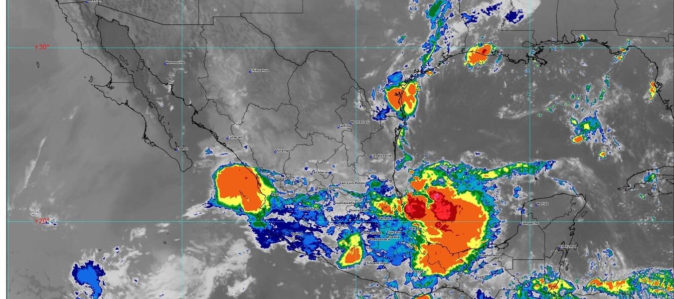 El ingreso de aire húmedo del océano Pacífico producirá lluvias puntuales intensas en Guerrero y Michoacán; puntuales muy fuertes en Colima, Jalisco y Nayarit; puntuales fuertes en Durango y Sinaloa; chubascos en Chihuahua; y lluvias aisladas en zonas de Sonora.