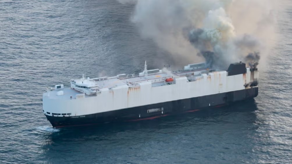 De acuerdo con la plataforma especializada Vessel Finder, el barco había zarpado de Yantai, China, el 26 de mayo y tenía previsto arribar a México el 15 de junio. El navío transportaba un total de 3 mil 48 vehículos, entre ellos 70 completamente eléctricos y 681 híbridos. El buque no podía ser rescatado porque continuaba quemándose.