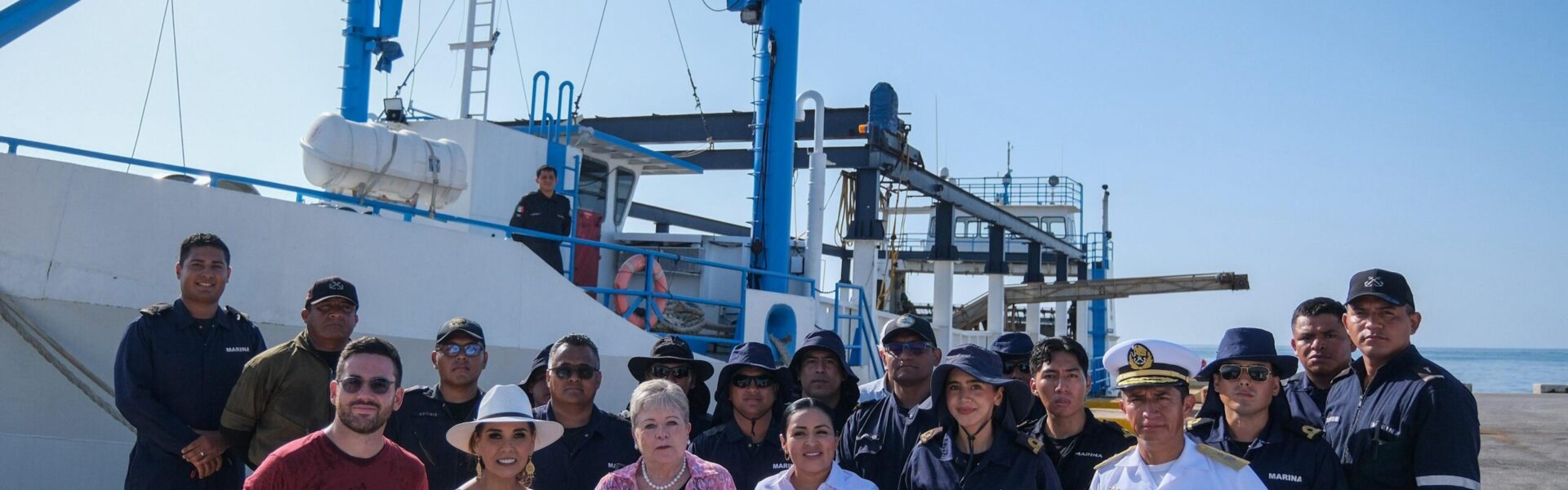 Mara Lezama y Alicia Bárcena recorren y supervisan estrategia integral contra el sargazo a bordo del buque “Natans”