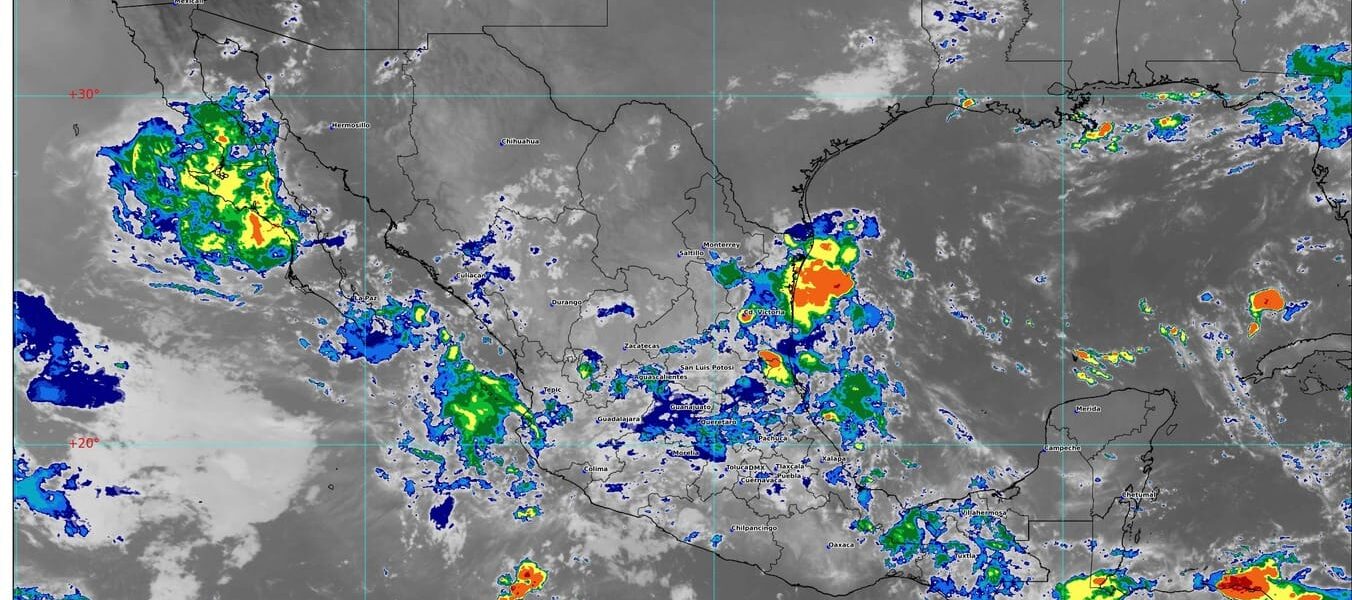 Un canal de baja presión sobre la Mesa del Norte y la Mesa Central, en interacción con inestabilidad atmosférica, ocasionarán lluvias puntuales fuertes en Zacatecas, Aguascalientes, Guanajuato, Estado de México, Puebla, Guerrero, Oaxaca y Veracruz; así como lluvias con intervalos de chubascos en Querétaro, Hidalgo, Ciudad de México, Morelos y Tlaxcala.