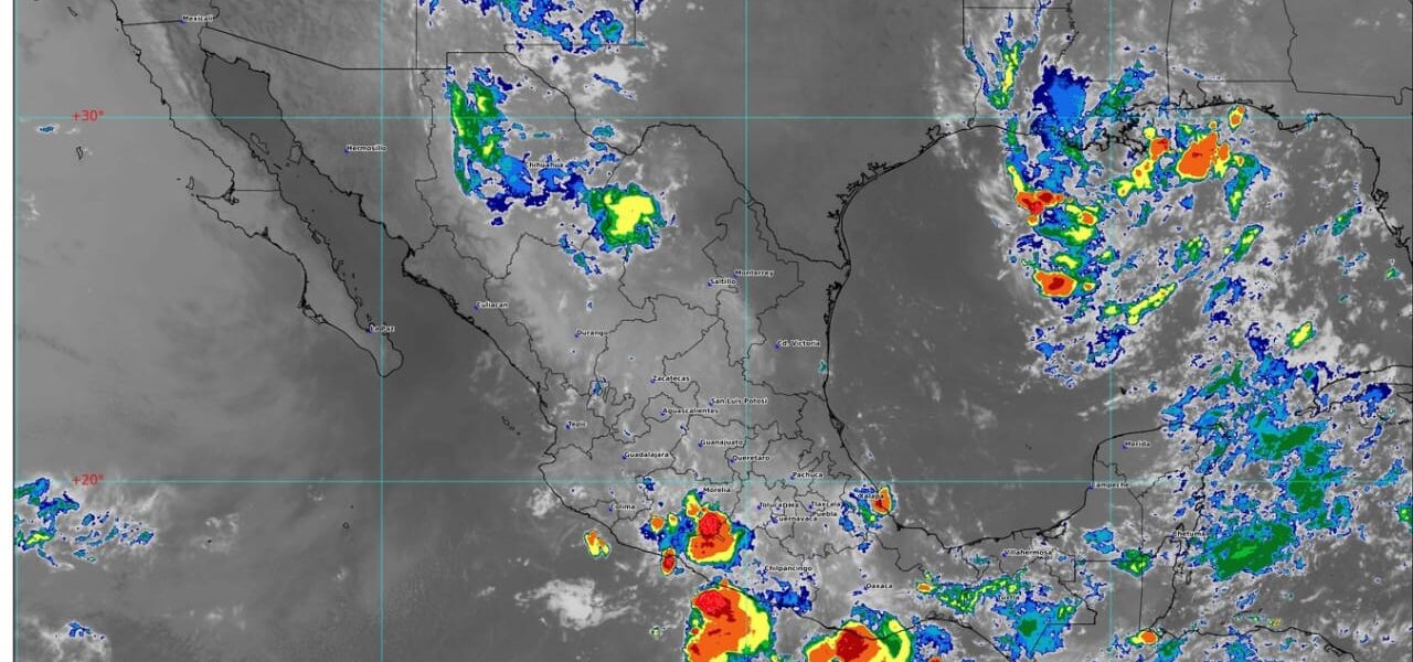 El ingreso de aire húmedo del golfo de México y océano Pacífico, en interacción con un canal de baja presión sobre la Mesa del Norte y con inestabilidad atmosférica en el occidente del país, ocasionarán lluvias puntuales muy fuertes en Michoacán y Guerrero; puntuales fuertes en Veracruz, Puebla, Morelos, Ciudad de México, Estado de México, Colima y Jalisco; intervalos de chubascos en Tlaxcala e Hidalgo; y lluvias aisladas en zonas de Querétaro, Guanajuato, Aguascalientes, Zacatecas, San Luis Potosí, Tamaulipas, Nuevo León y Coahuila.