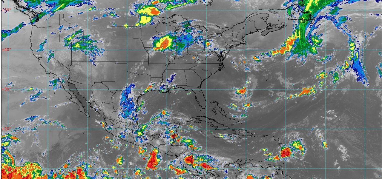 En el occidente, un canal de baja presión y una atmósfera inestable generarán lluvias puntuales fuertes con descargas eléctricas en Michoacán, Colima y Jalisco, mientras que en el centro y sur del país, la onda tropical número 15 y una vaguada en altura originarán lluvias intensas en Oaxaca, Veracruz y Puebla, así como lluvias muy fuertes en Guerrero,