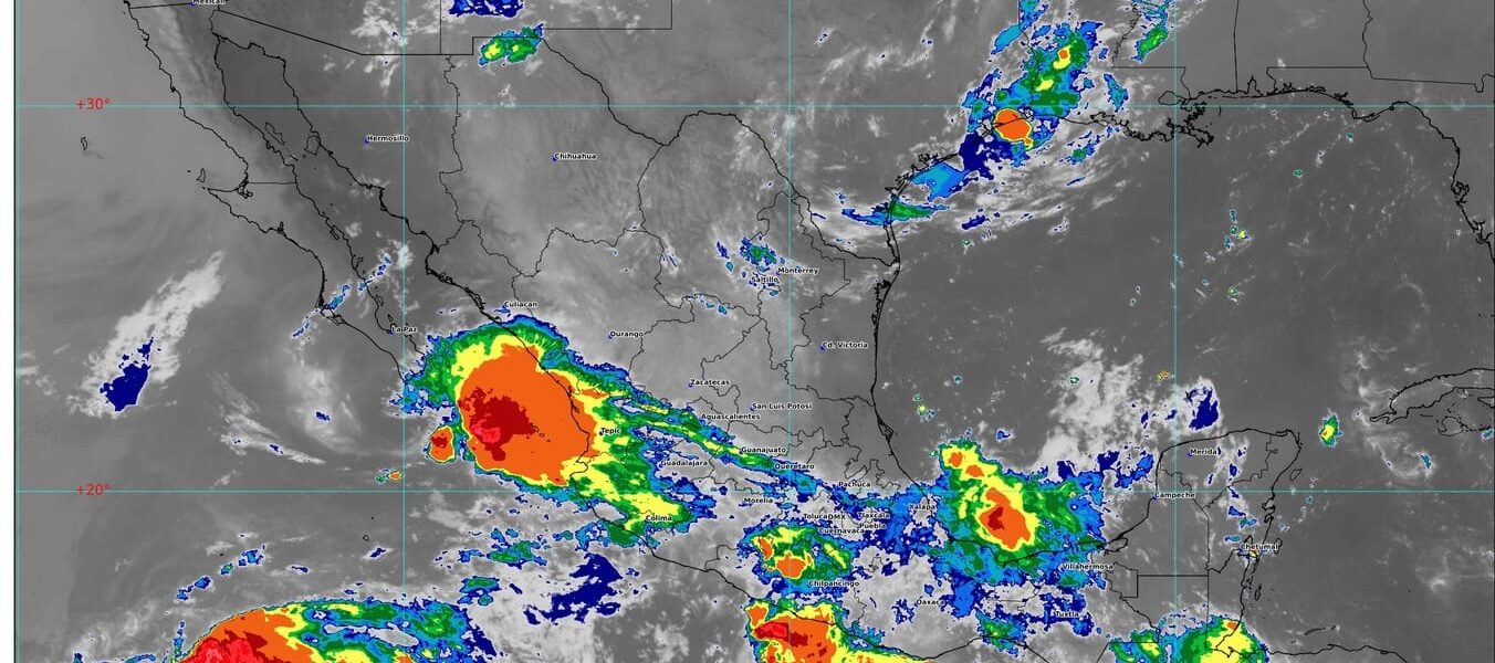 A su vez, el monzón mexicano en combinación con inestabilidad y una circulación ciclónica en niveles altos de la atmósfera, localizada al suroeste de Baja California Sur, generarán chubascos y lluvias fuertes con descargas eléctricas en el noroeste de México.