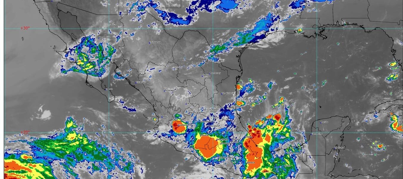 🔸 Originará lluvias intensas con descargas eléctricas en Jalisco, Colima y Michoacán; posible caída de granizo en zonas altas.