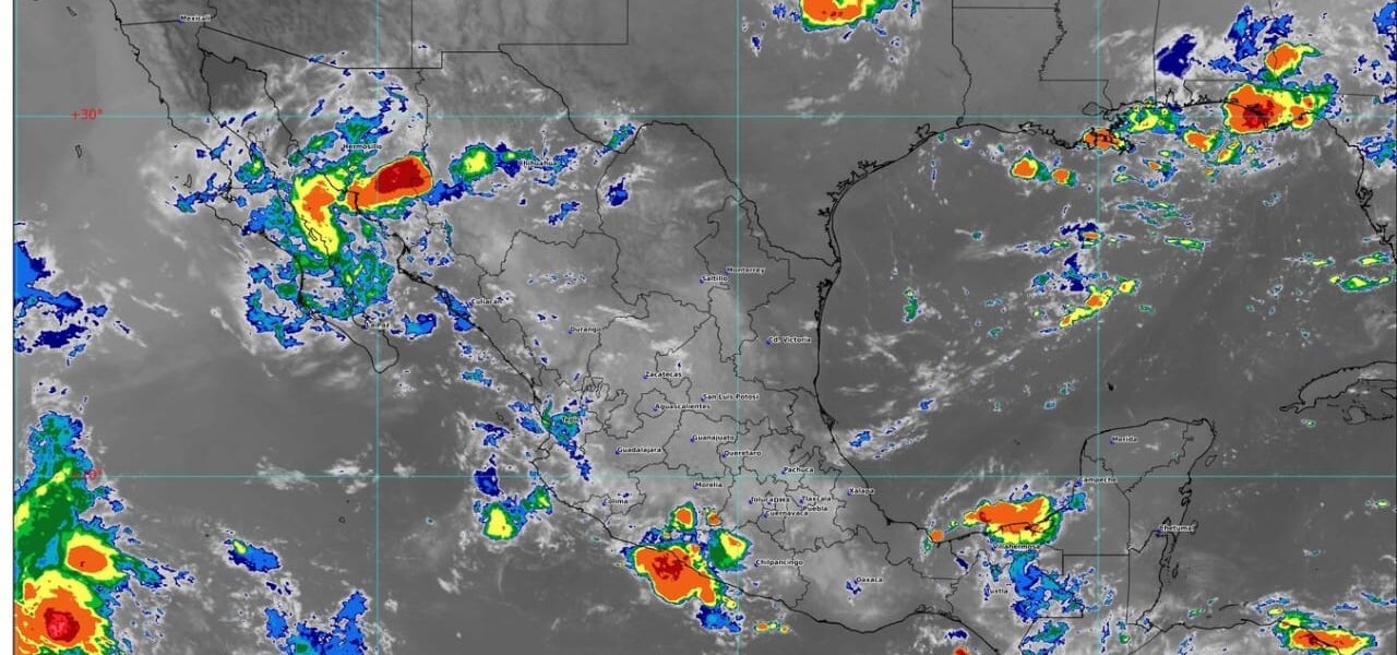 Un canal de baja presión, aunado a la afluencia de humedad procedente del golfo de México, generará lluvias y chubascos en el norte, noreste, occidente, centro y oriente del territorio nacional, con lluvias fuertes a puntuales muy fuertes en Jalisco, Colima, Puebla, Michoacán y Guerrero.