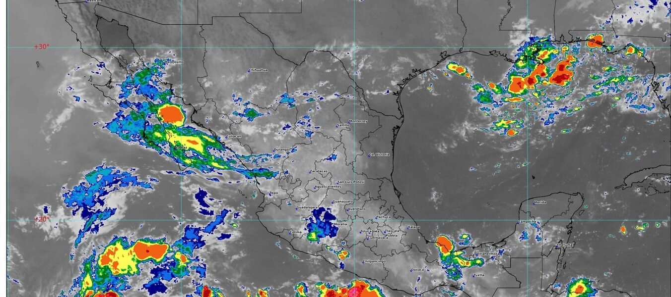 El ingreso de aire húmedo del océano Pacífico en combinación con inestabilidad en altura sobre el occidente de México, propiciará lluvias puntuales muy fuertes en Jalisco y Colima; y puntuales fuertes en Guerrero y Michoacán, todas con descargas eléctricas, y con posible caída de granizo en zonas altas.
