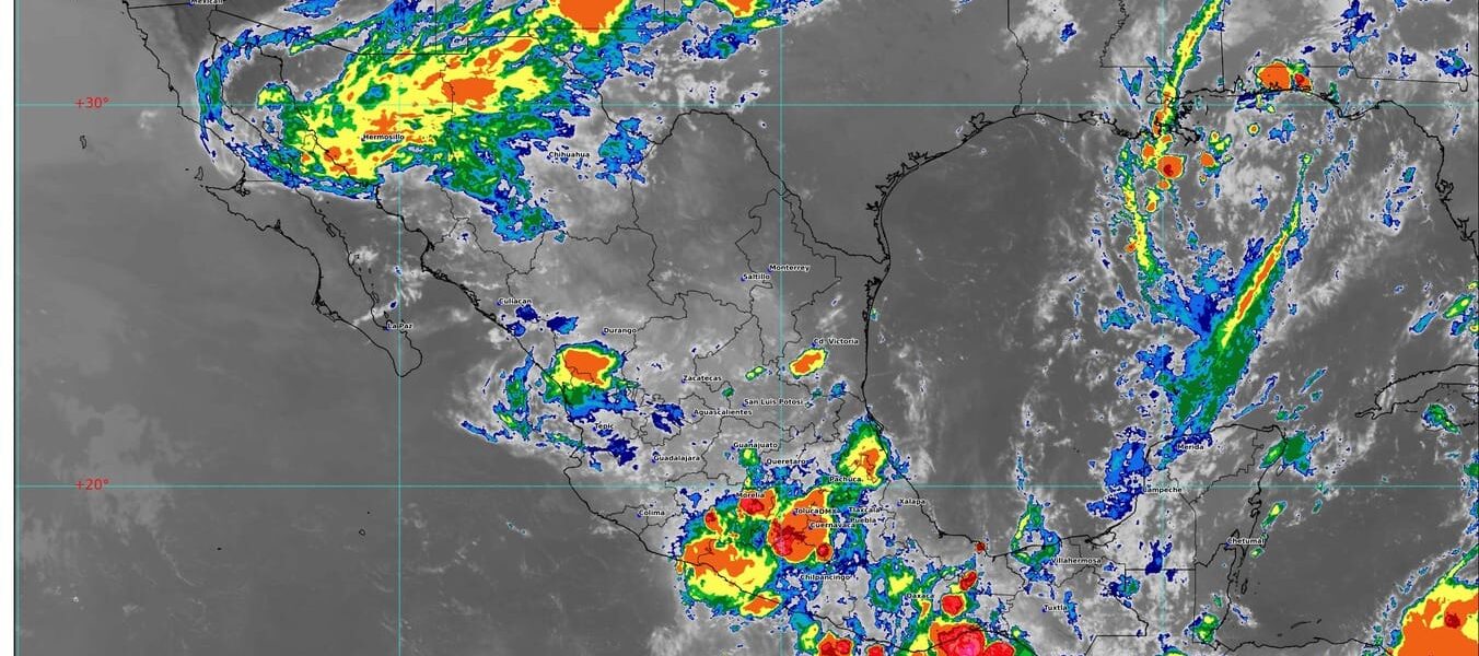 Por otra parte, un canal de baja presión sobre la Mesa del Norte y la Mesa Central, en interacción con una vaguada en altura extendida desde el noreste hasta el occidente del país, con inestabilidad atmosférica y con el ingreso de humedad del océano Pacífico y golfo de México, ocasionarán lluvias puntuales intensas en Jalisco y Colima; lluvias fuertes a muy fuertes en las regiones antes mencionadas, además del oriente y sur de la República Mexicana, con descargas eléctricas, y posible caída de granizo en el occidente y centro de México.