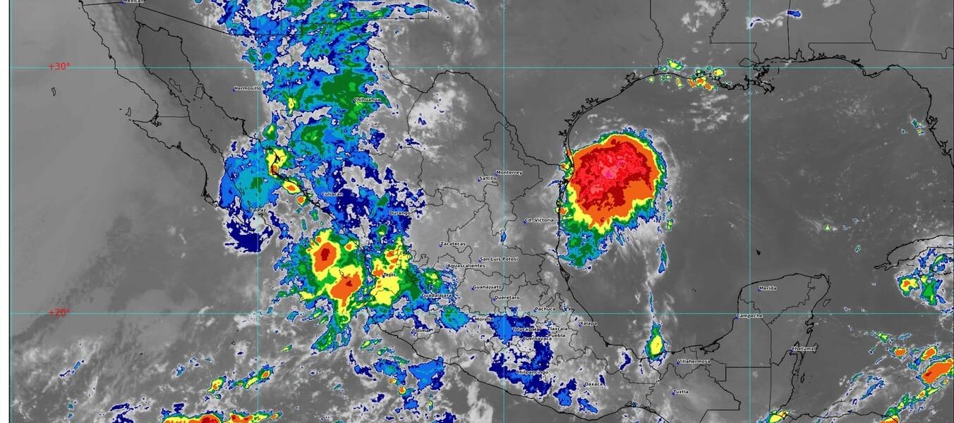 🔸Una zona de baja presión con probabilidad de convertirse en ciclón tropical se localiza frente a las costas de Tamaulipas.