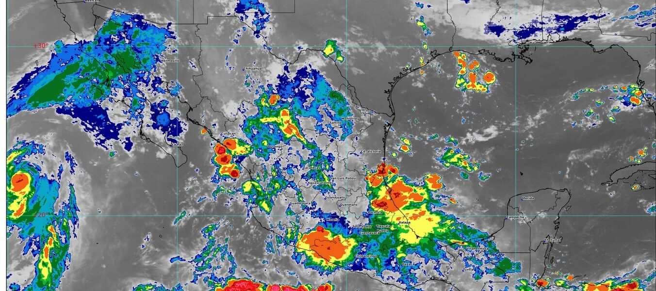 El ingreso de aire húmedo del océano Pacífico propiciará lluvias puntuales muy fuertes en Jalisco, Colima y Michoacán; y el paso de la onda tropical número 26 sobre el sur del territorio nacional, mantendrá la probabilidad de lluvias puntuales intensas en Oaxaca; y puntuales muy fuertes en Guerrero.