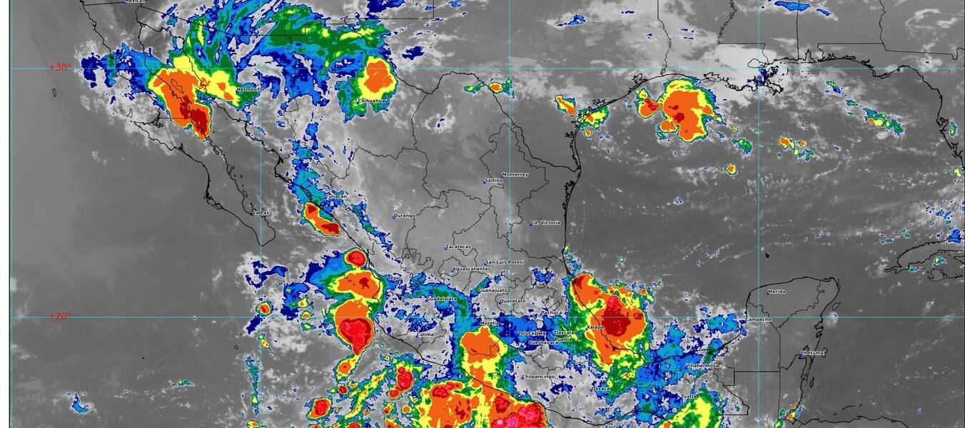 El monzón mexicano y la inestabilidad atmosférica ocasionarán lluvias puntuales intensas en Chihuahua, Sinaloa y Nayarit; muy fuertes en Sonora y Durango; además de chubascos y precipitaciones fuertes en la península de Baja California, todas acompañadas de descargas eléctricas.