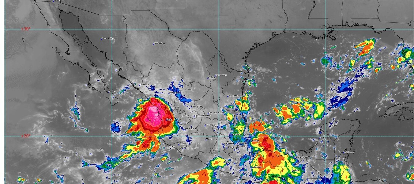 Un canal de baja presión sobre el interior del país, combinado con el ingreso de humedad del océano Pacífico y golfo de México, ocasionará lluvias intensas en Puebla; muy fuertes en Morelos, Estado de México, Hidalgo, Querétaro, Michoacán, Colima y Jalisco; así como fuertes en Tlaxcala, Ciudad de México, Guanajuato, Aguascalientes y Zacatecas.