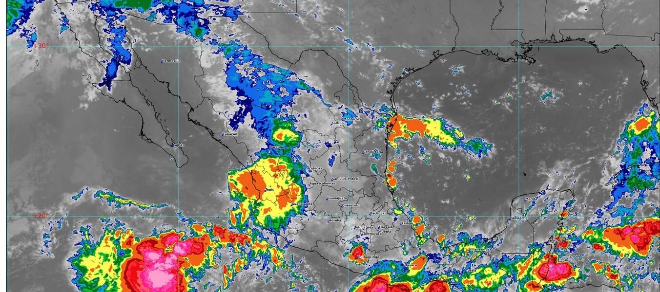 Una zona de baja presión con probabilidad para desarrollo ciclónico frente a las costas de Jalisco, generará lluvias puntuales muy fuertes en Michoacán, Colima y Jalisco, acompañándose de oleaje de 2 a 3 metros de altura en costas de Jalisco, Colima y Michoacán.