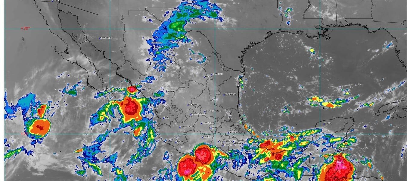 El SMN también destacó que una zona de baja presión con potencial ciclónico al sur de Guerrero, en interacción con un canal de baja presión en el sureste, propiciará las lluvias más intensas sobre Guerrero, Oaxaca y Chiapas.