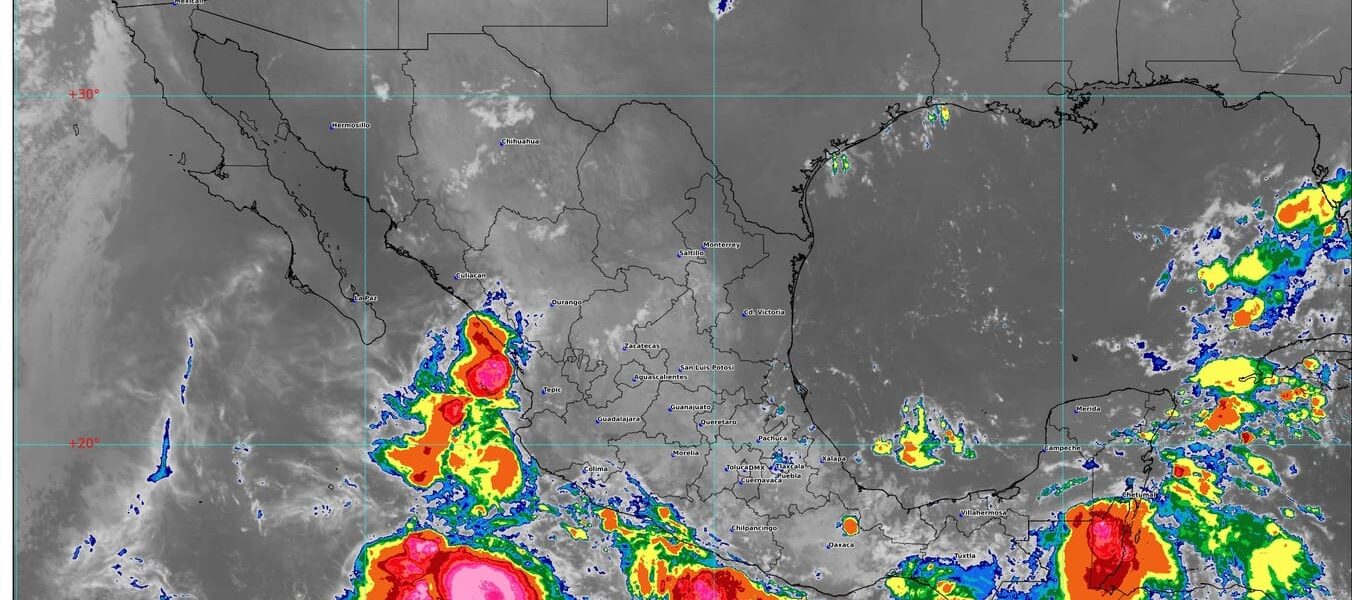 Finalmente, canales de baja presión, combinados con inestabilidad atmosférica y el ingreso de humedad de ambos océanos, favorecerán lluvias fuertes a muy fuertes en el centro y sur del país, con precipitaciones intensas en Puebla y Guerrero.