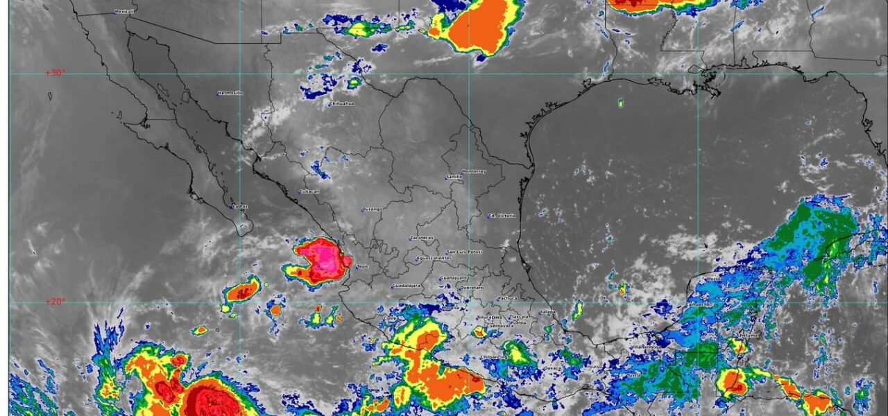 Otro canal de baja presión sobre el interior de la República Mexicana y el ingreso de aire húmedo del océano Pacífico y golfo de México, originarán lluvias puntuales muy fuertes en Puebla, Morelos, Estado de México y San Luis Potosí; puntuales fuertes en Tabasco, Tlaxcala, Ciudad de México, Hidalgo, Querétaro y Guanajuato; chubascos en Zacatecas, así como lluvias aisladas en Aguascalientes.