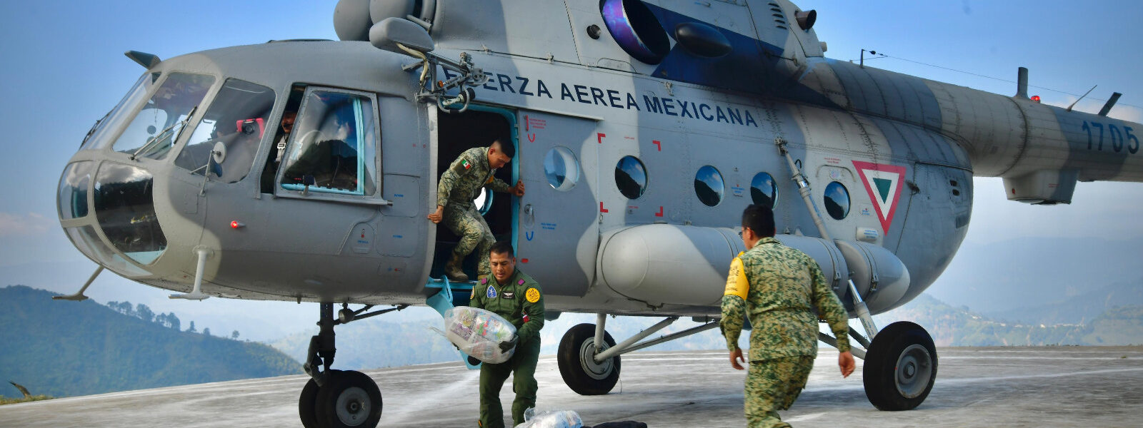 🔸 Los elementos participan en las operaciones de auxilio con maquinaria pesada, aeronaves, hospitales móviles, cocinas comunitarias y equipos médicos