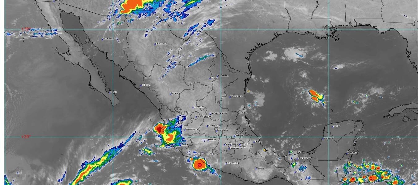 Por otra parte, la corriente en chorro subtropical y una vaguada en altura sobre el noroeste y norte del país, en interacción con inestabilidad atmosférica y la aproximación de un nuevo frente frío a la frontera norte de México, ocasionarán rachas de viento, lluvias y chubascos con descargas eléctricas en las regiones mencionadas, además de lluvias puntuales fuertes en Chihuahua.