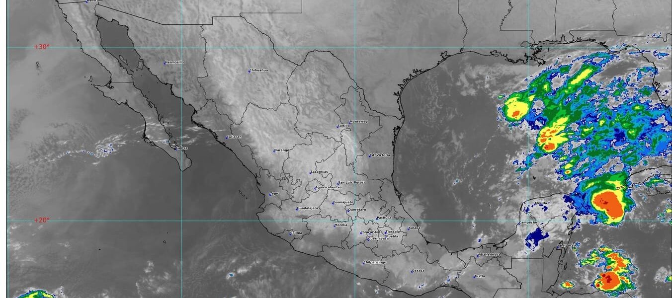 Simultáneamente, un canal de baja presión sobre la península de Yucatán, aunado al ingreso de humedad del golfo de México y mar Caribe, originará lluvias fuertes en regiones de Tabasco, Campeche, Yucatán y Quintana Roo.