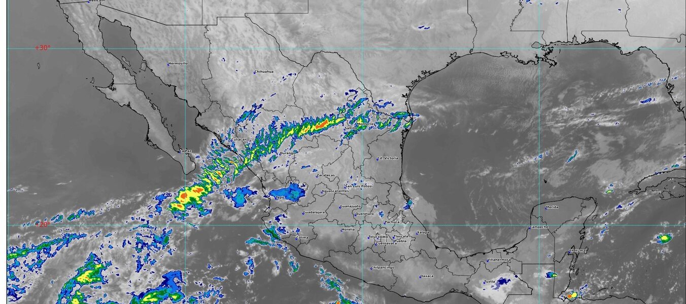 Por otra parte, canales de baja presión sobre el interior del país, en combinación con el ingreso de humedad del océano Pacífico y golfo de México, ocasionarán lluvias e intervalos de chubascos en zonas del occidente, centro, oriente, sur y sureste del territorio nacional.
