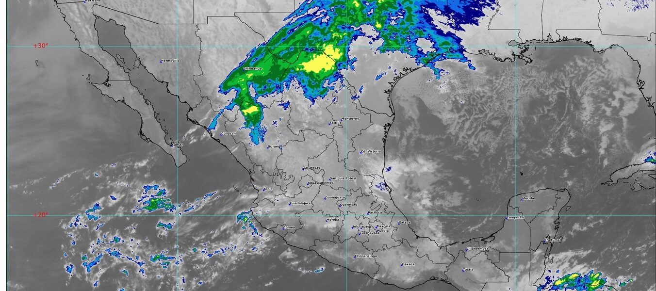 Por otra parte, un canal de baja presión en el oriente y sureste del territorio nacional, la corriente en chorro subtropical, una vaguada en altura y el ingreso de humedad del océano Pacífico, golfo de México y mar Caribe generarán lluvias y chubascos en las regiones del norte, noreste, occidente, oriente, centro, sur y sureste del país, incluida la península de Yucatán.