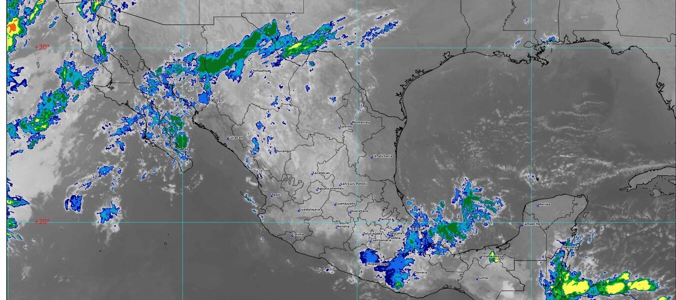 Simultáneamente, un canal de baja presión en el centro del país, aunado a inestabilidad atmosférica y al ingreso de humedad del océano Pacífico y golfo de México, ocasionarán lluvias y chubascos en dicha región; con lluvias puntuales fuertes en Guerrero.