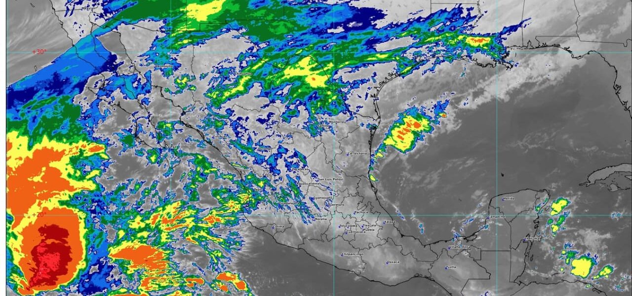 Por otro lado, el ingreso de humedad del océano Pacífico favorecerá intervalos de chubascos en Jalisco, Colima, Michoacán y Guerrero.