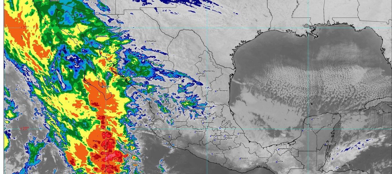 Por otra parte, una vaguada en niveles medios y altos de la atmósfera frente a la costa occidental de la península de Baja California, en interacción con un río atmosférico y con la corriente en chorro subtropical, originarán rachas fuertes de viento, lluvias puntuales muy fuertes en la Península de Baja California e intervalos de chubascos en Chihuahua y Sinaloa, así como probabilidad de caída de nieve o aguanieve durante la noche en la sierra de San Pedro Mártir, B.C.