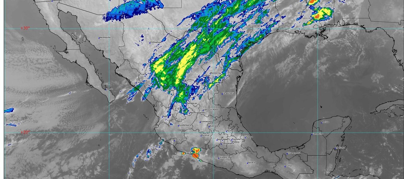 Simultáneamente, una vaguada en niveles medios y altos de la atmósfera permanecerá en el noroeste del territorio nacional y en interacción con la corriente en chorro polar, mantendrán el descenso de temperatura y rachas de viento fuertes a muy fuertes en estados del noroeste y norte del país.