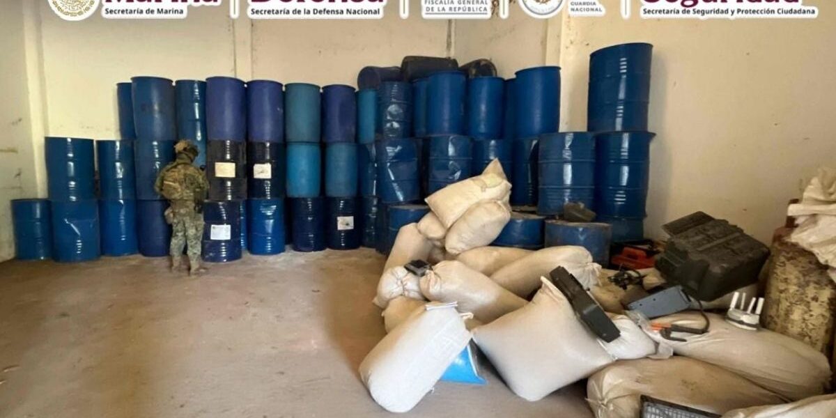 🔸 Fuerzas federales aseguraron una bodega y desmantelaron un narcolaboratorio en Guerrero con capacidad para la producción de tres tipos de drogas